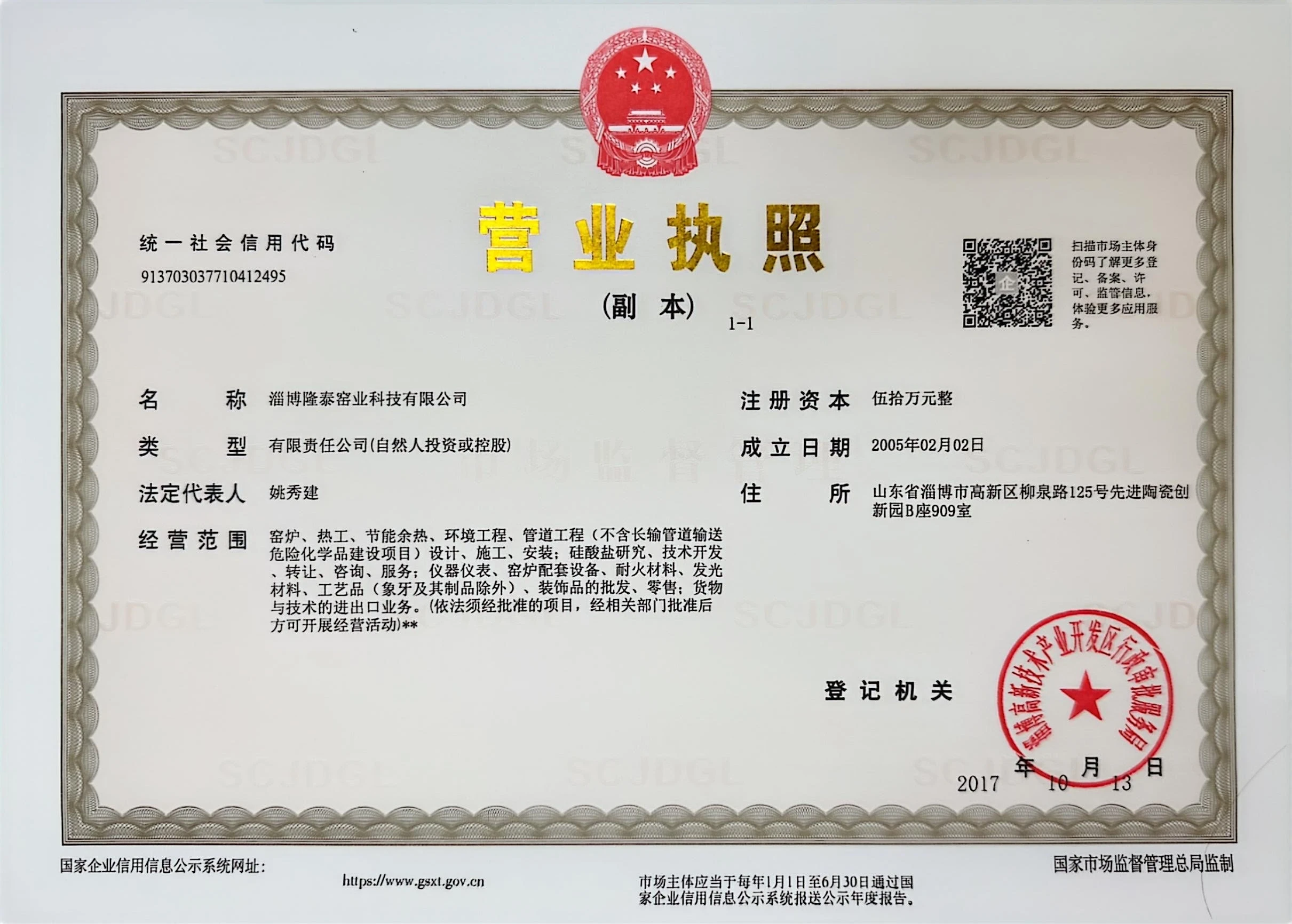 Registered address : Room 909, Block B, Advanced Ceramics Innovation Park, No. 125 Liuquan Road Zibo Shandong China